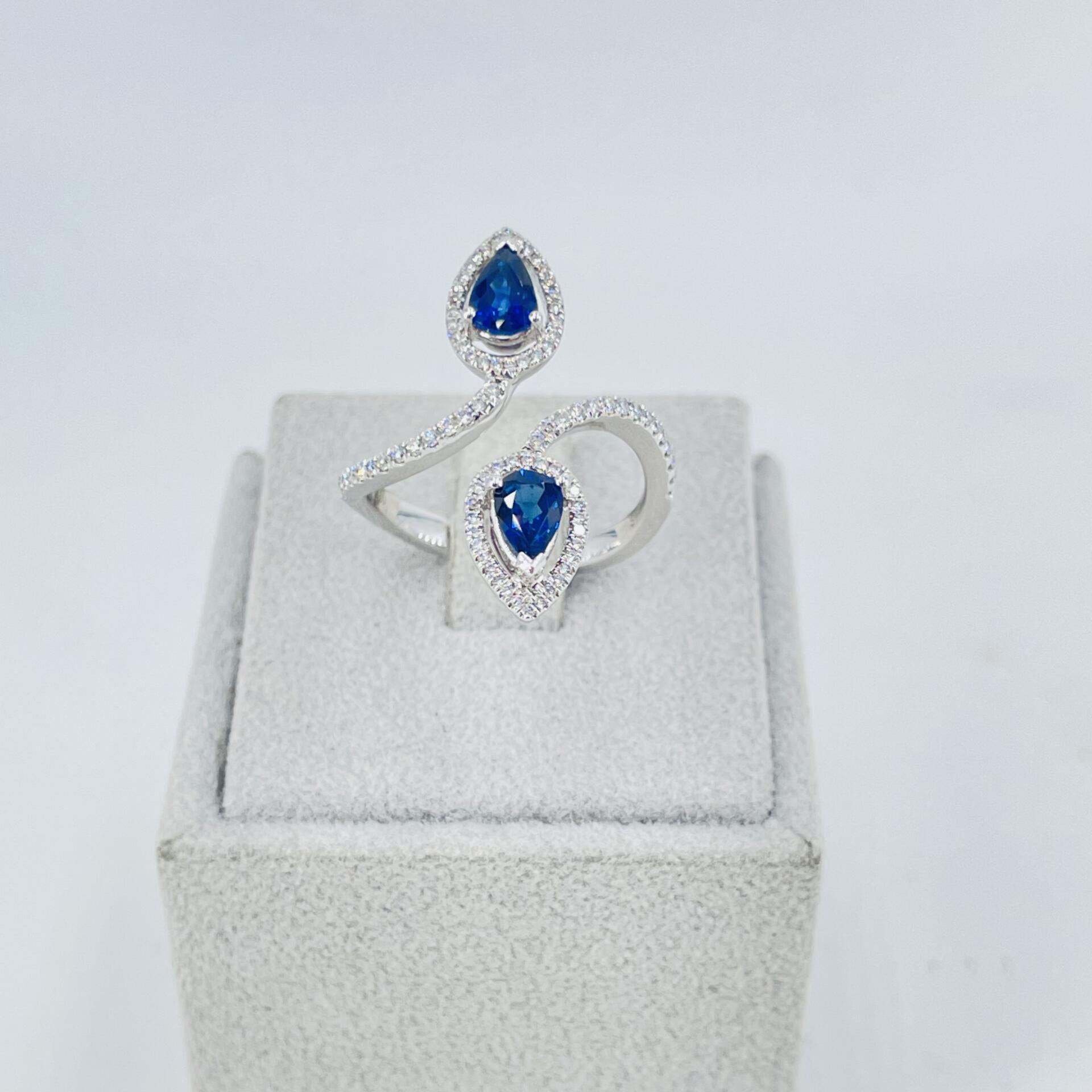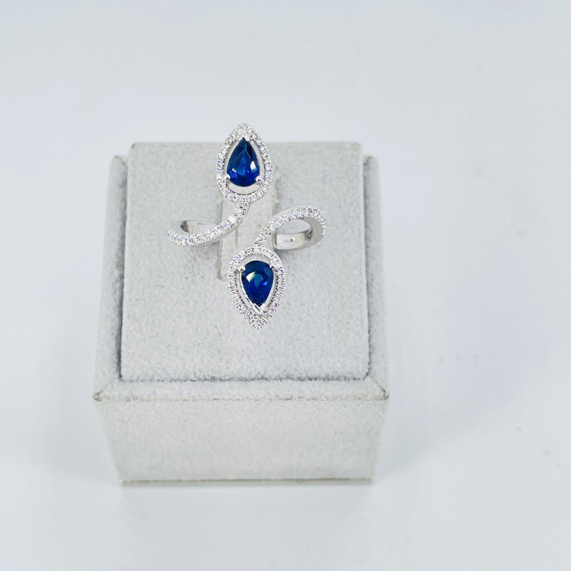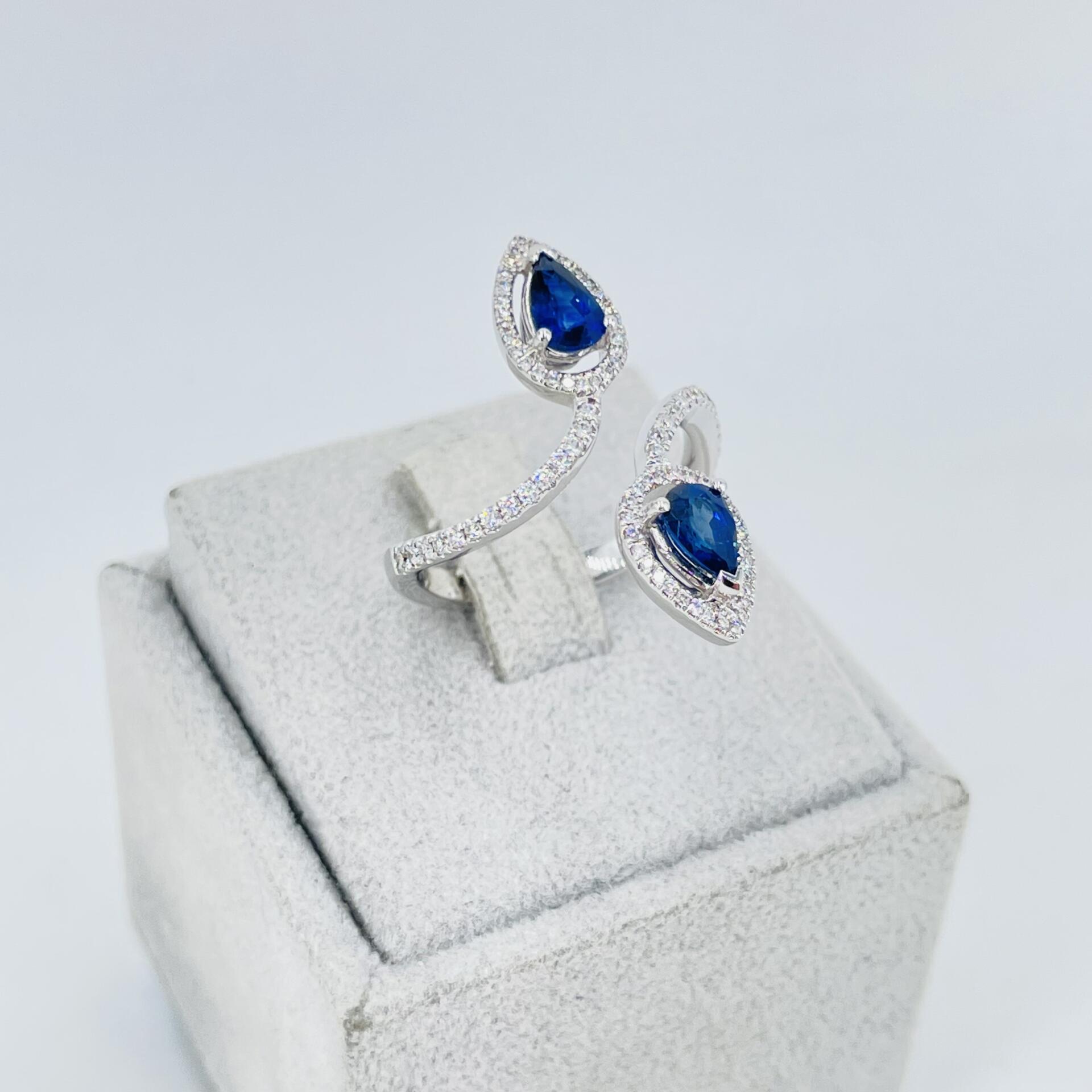 Anello a contrarié in oro bianco 18KT (750) con corindoni naturali varietà zaffiri e diamanti naturali