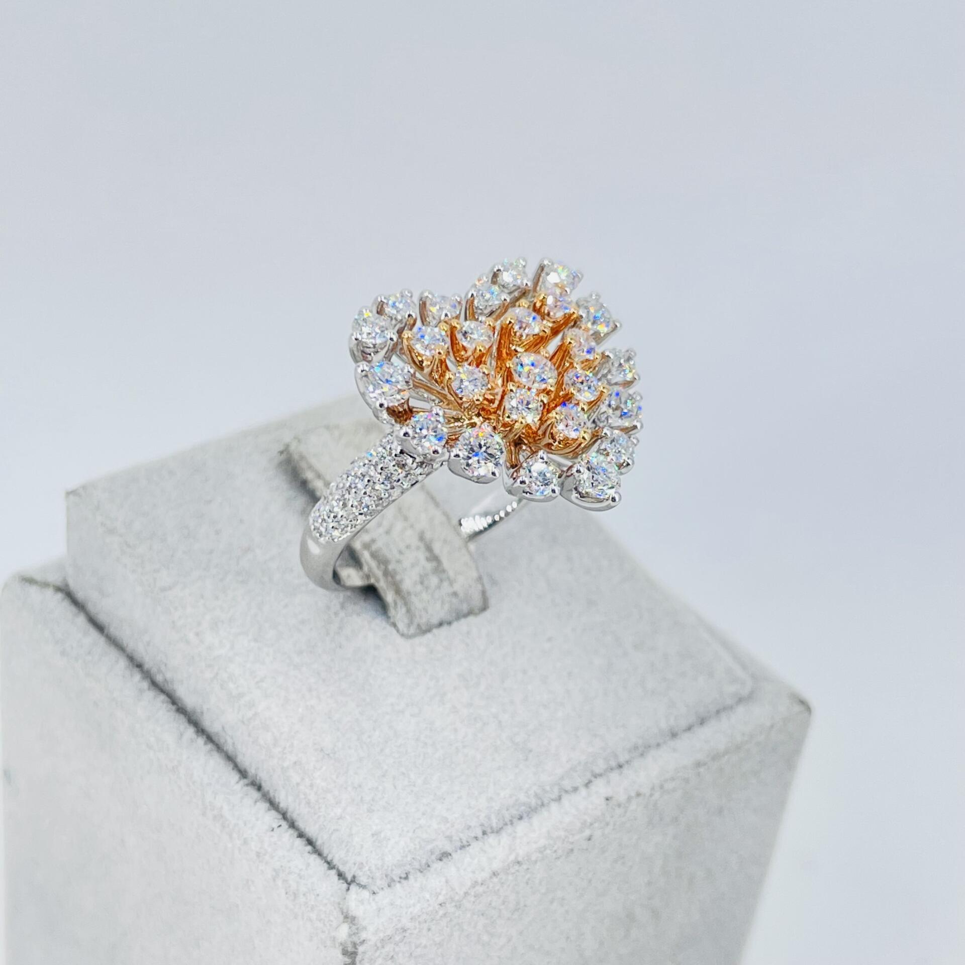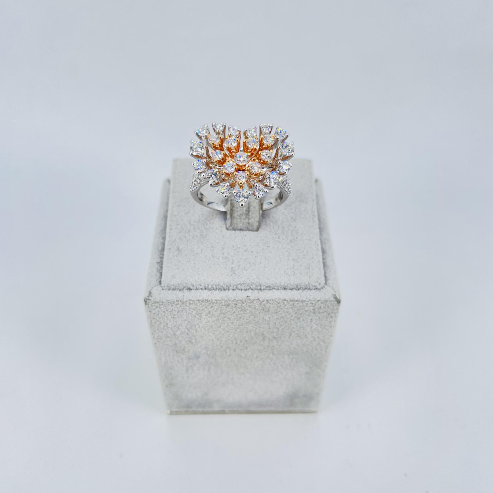 Anello a cuore in oro bianco e rosa 18KT (750) con diamanti naturali