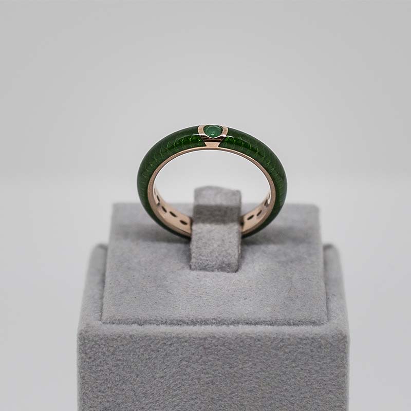Anello in argento925 rodiato in oro rosa smaltato verde con smeraldo naturale