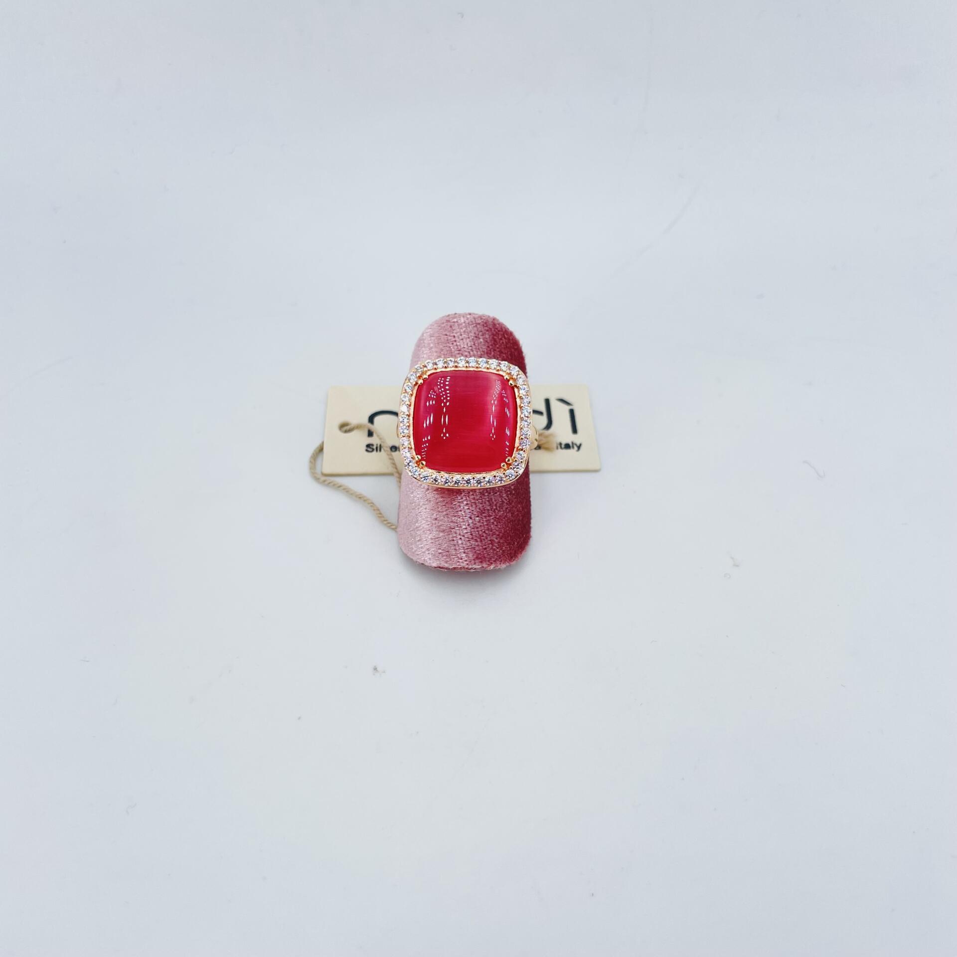 Anello in arg925 rodiato in oro rosa regolabile con quarzo color ciliegia naturale e zirconia