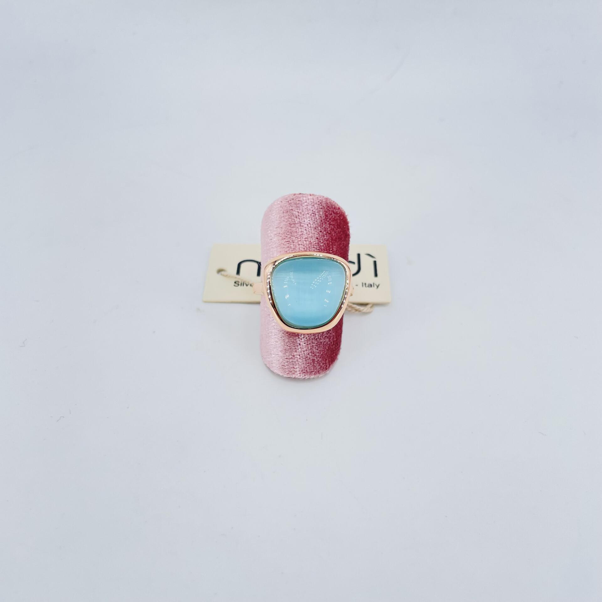 Anello in arg925 rodiato in oro rosa regolabile con quarzo azzurro naturale