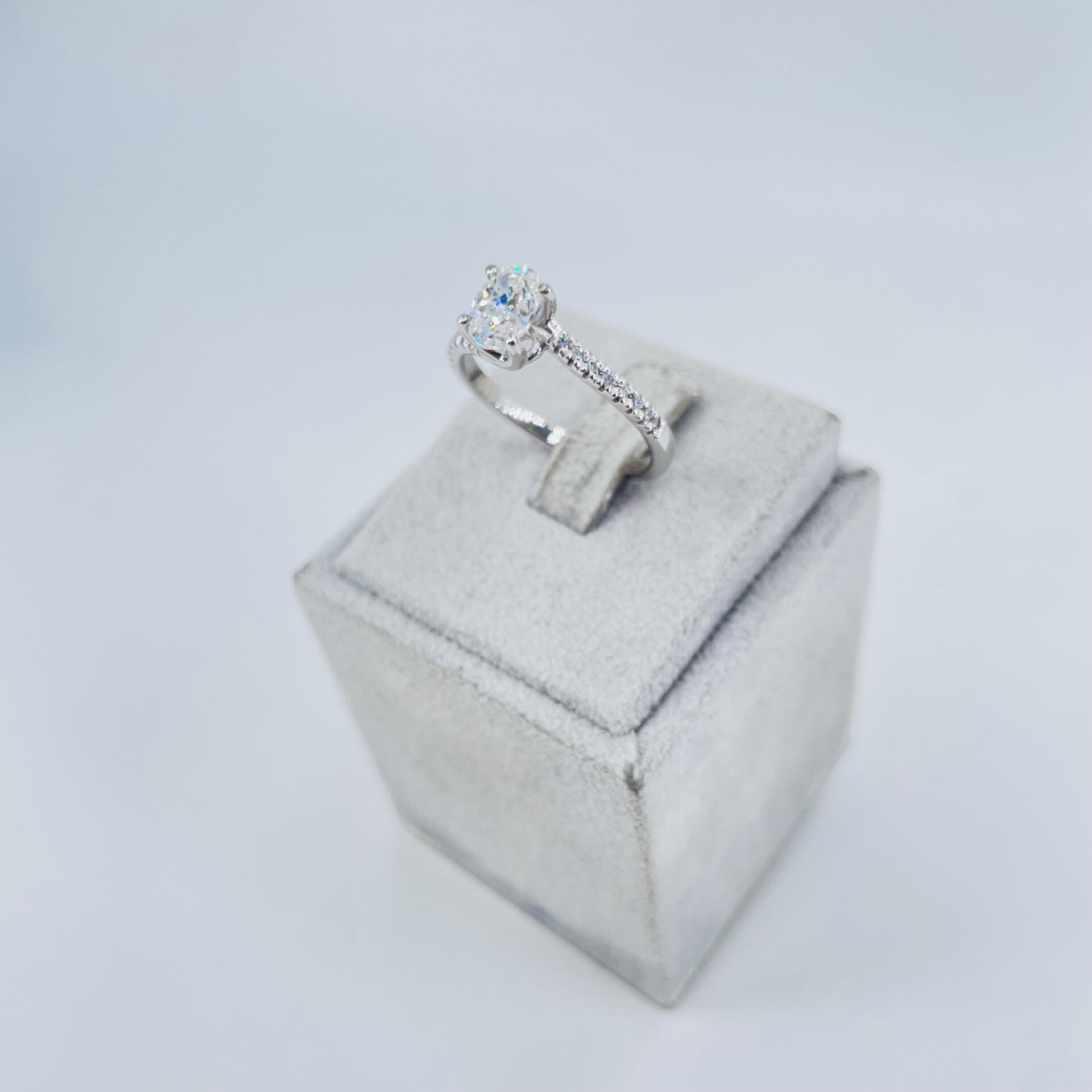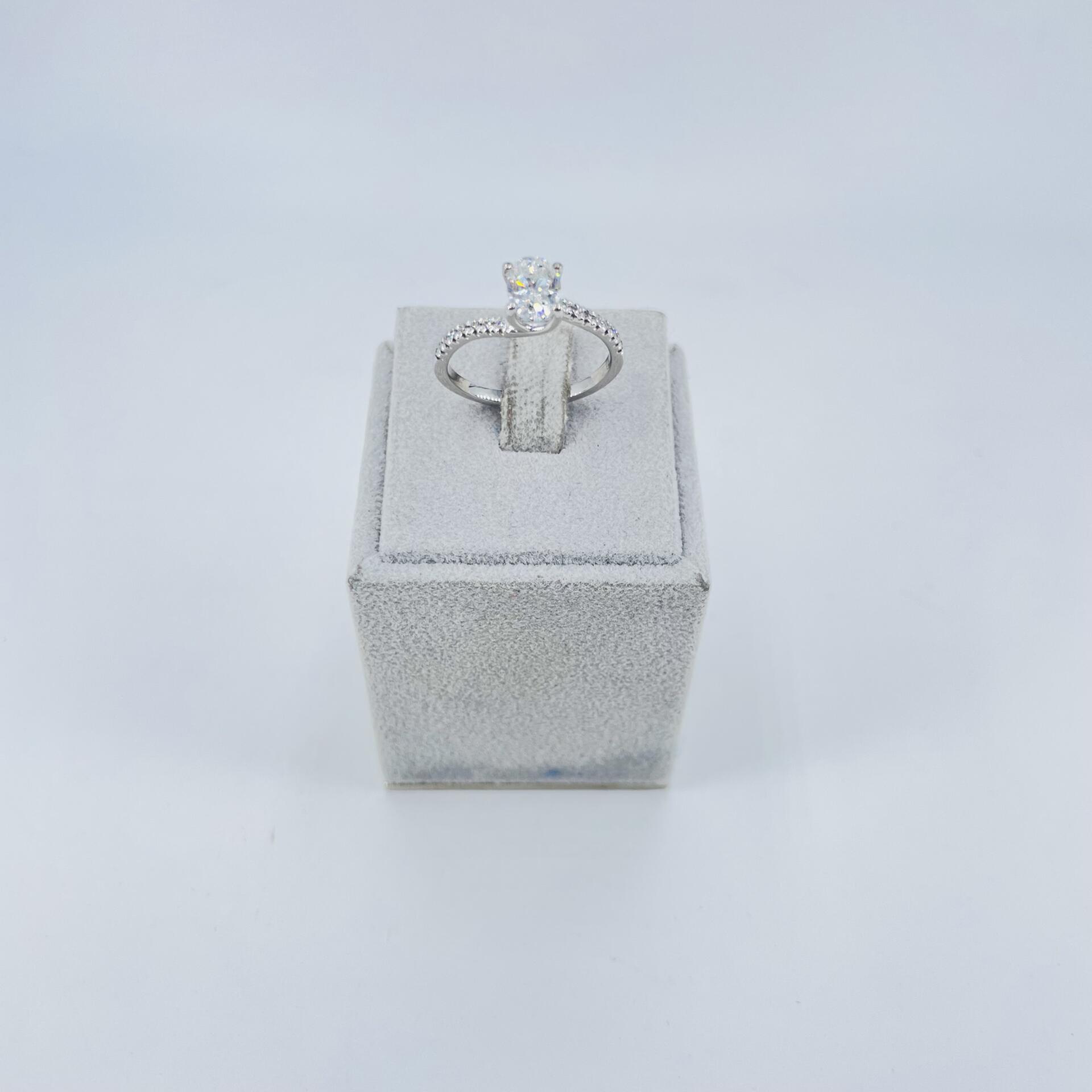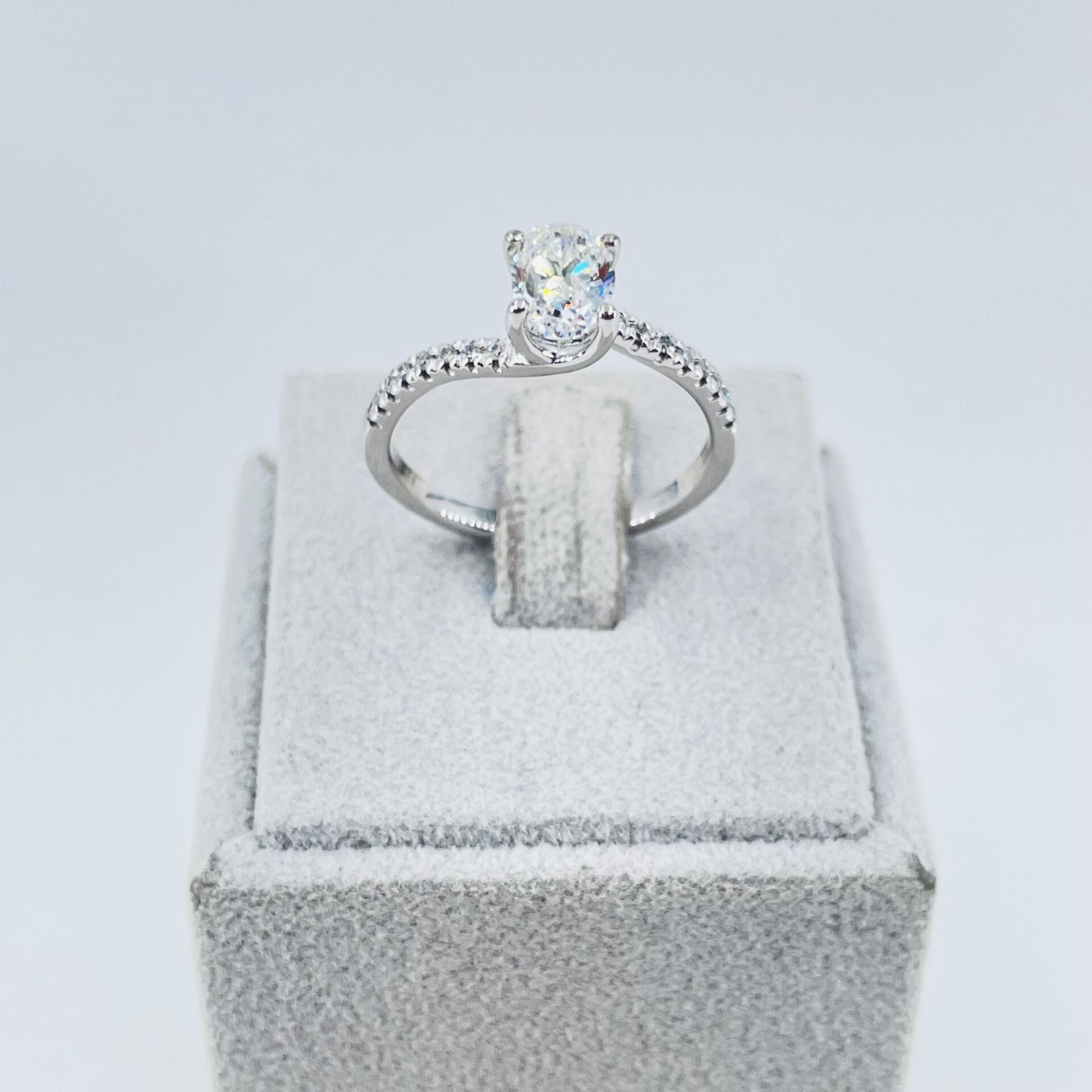 Anello solitario ovale in oro bianco 18KT (750) con diamanti naturali