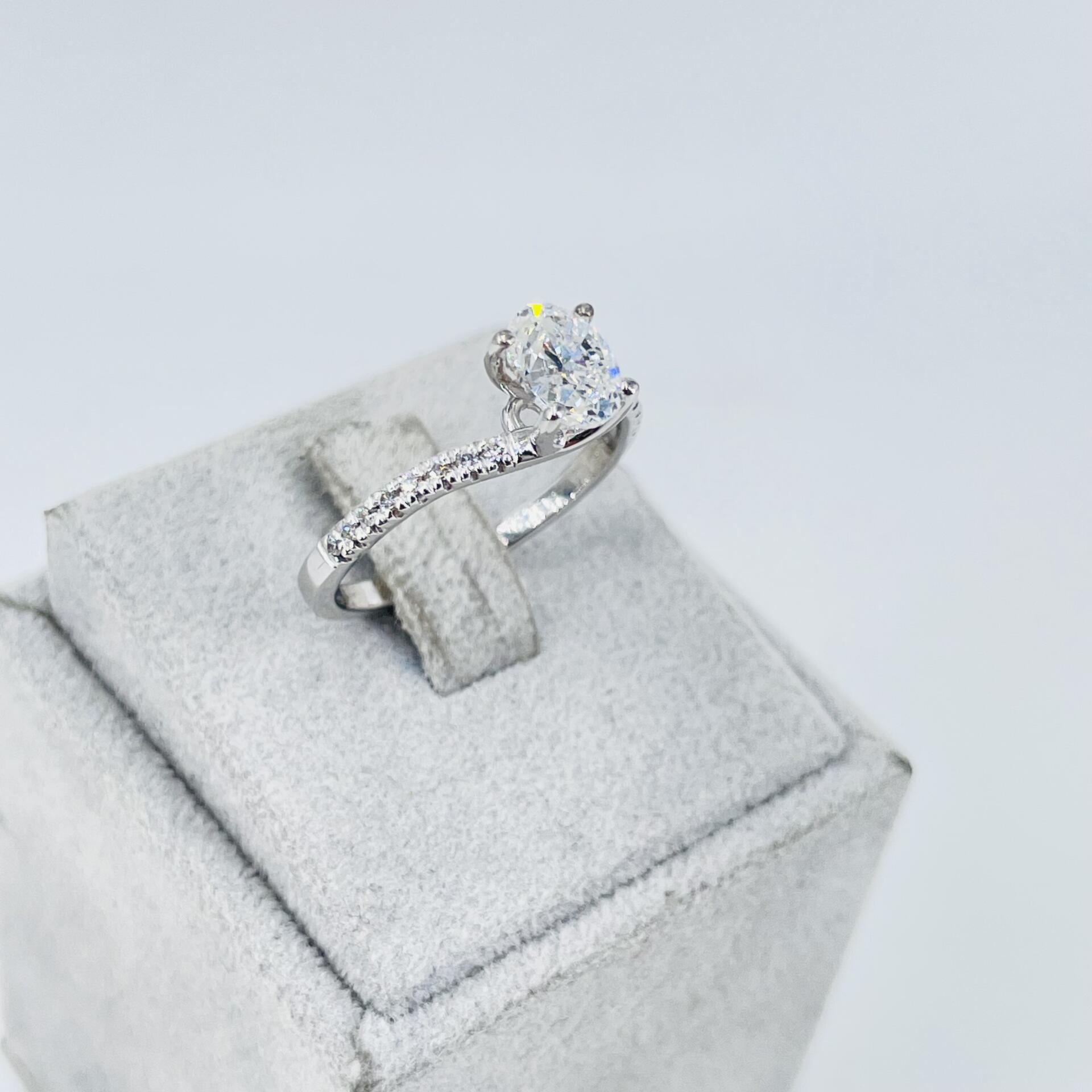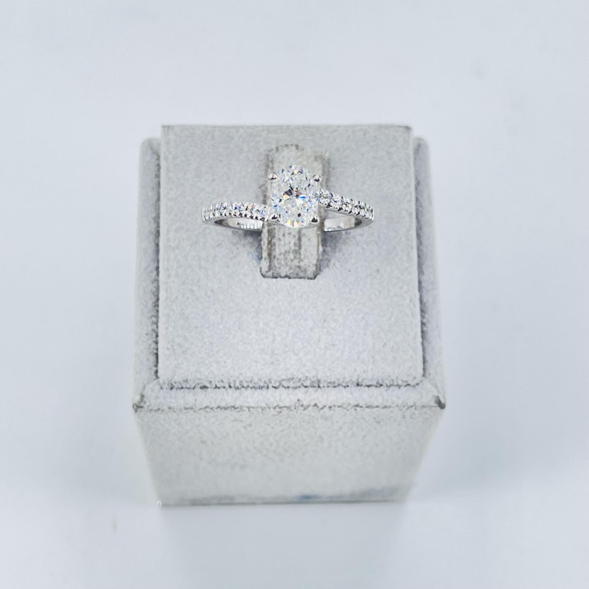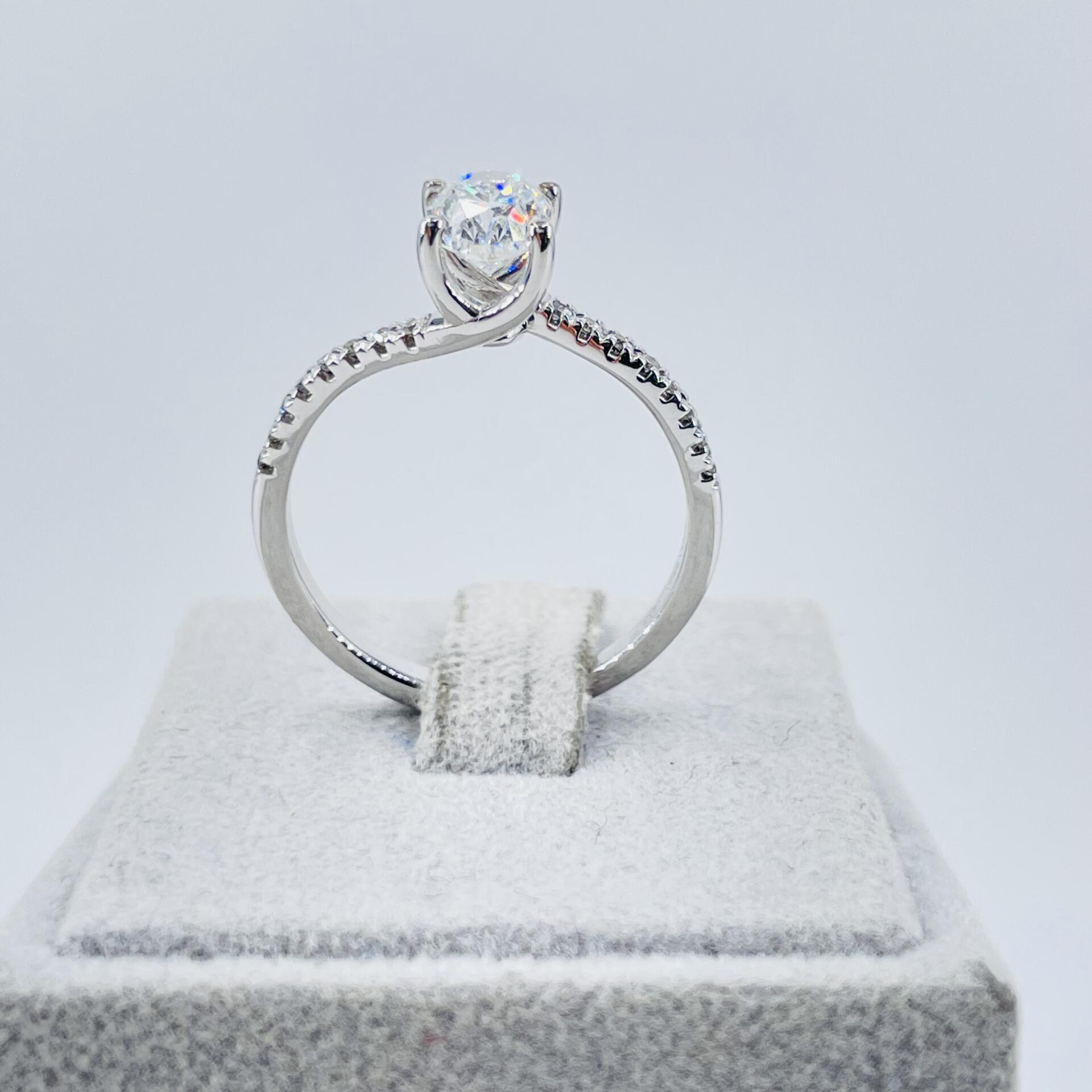 Anello solitario ovale in oro bianco 18KT (750) con diamanti naturali