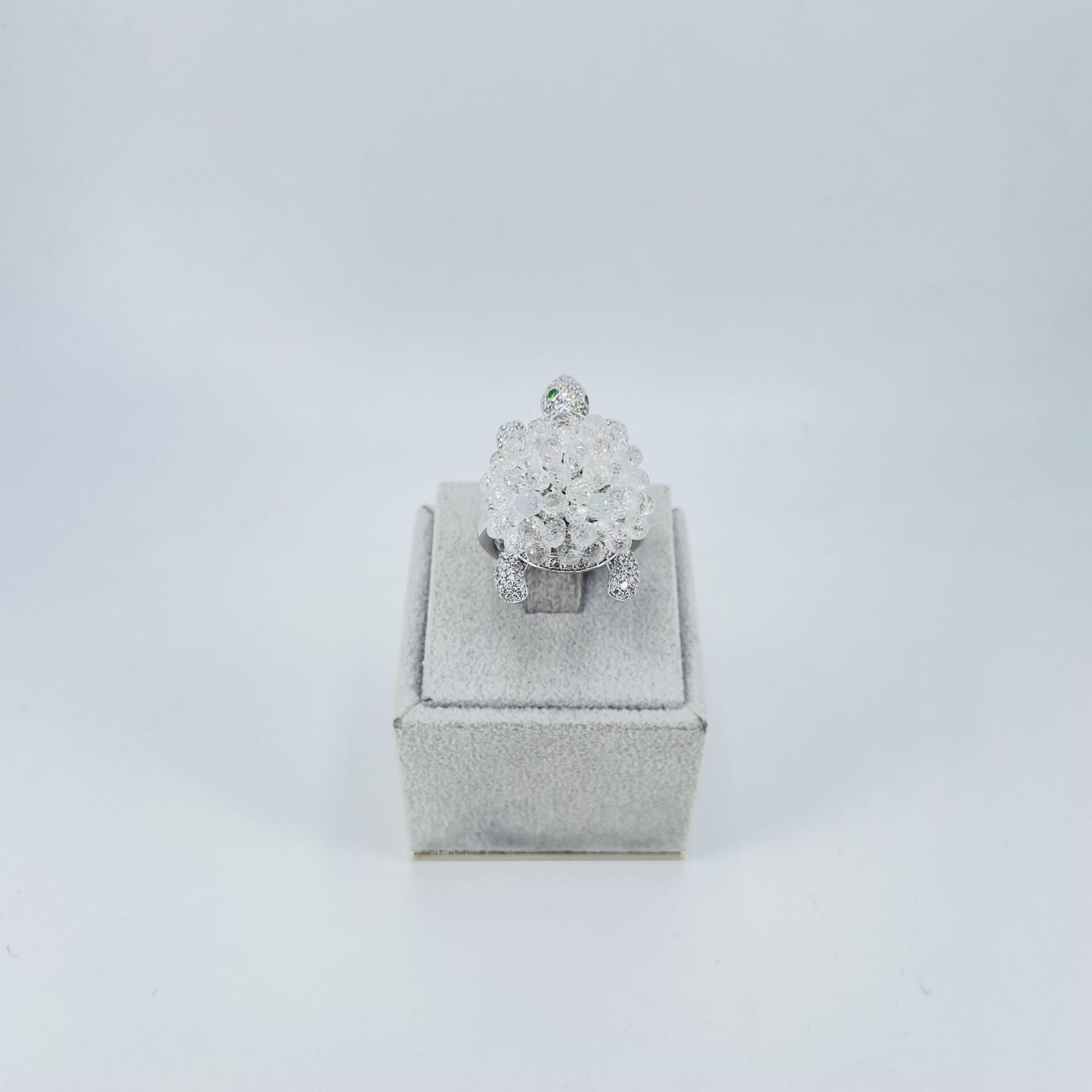 Anello tartaruga in oro bianco 18KT (750) con diamanti naturali, corindoni naturali varietà zaffiro e berilli naturali varietà smeraldo