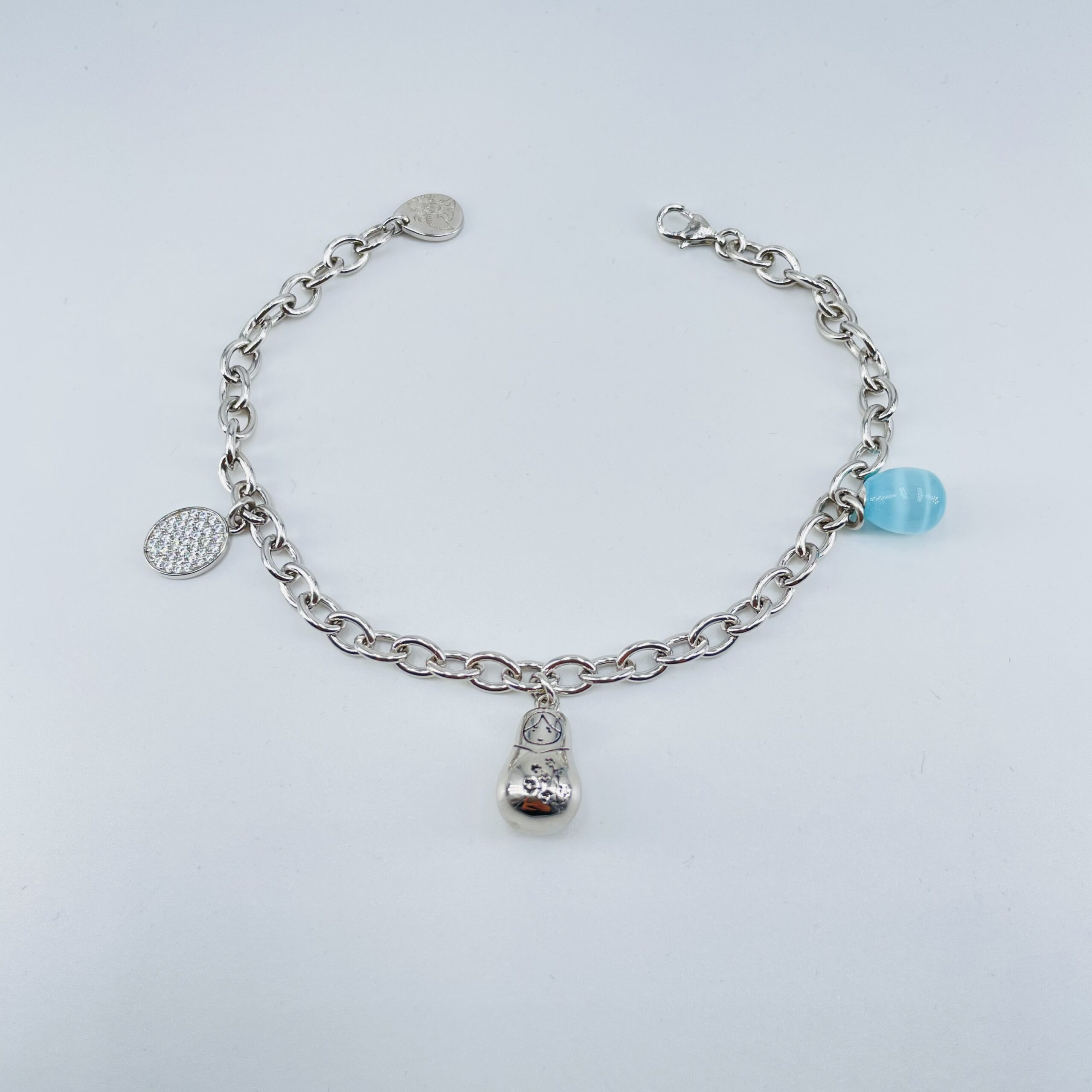 Bracciale in argento925 rodiato in oro bianco con cristallo di rocca e zirconi