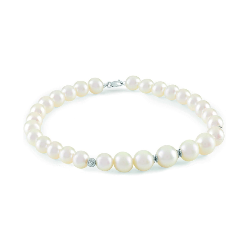 Bracciale con perle di acqua dolce a coltura naturale a scalare per 5-8 mm con elementi e chiusura in oro bianco 18kt.