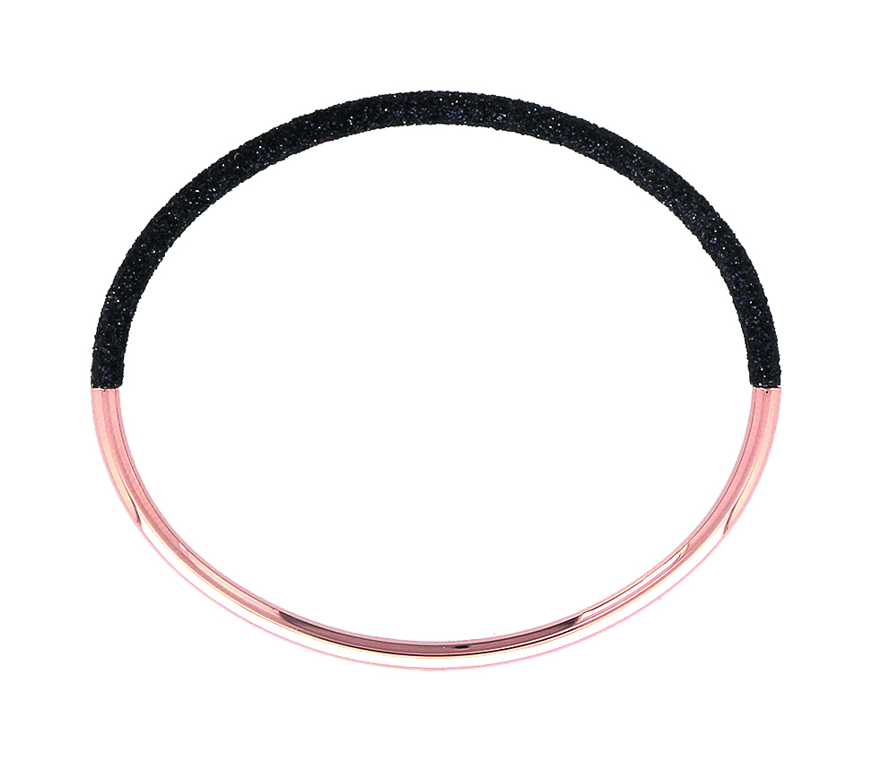 Bracciale firmato Pesavento rigido con molle laterali in argento 925 rodiato in oro rosa con micro-particelle di minerali naturali di colore nero.