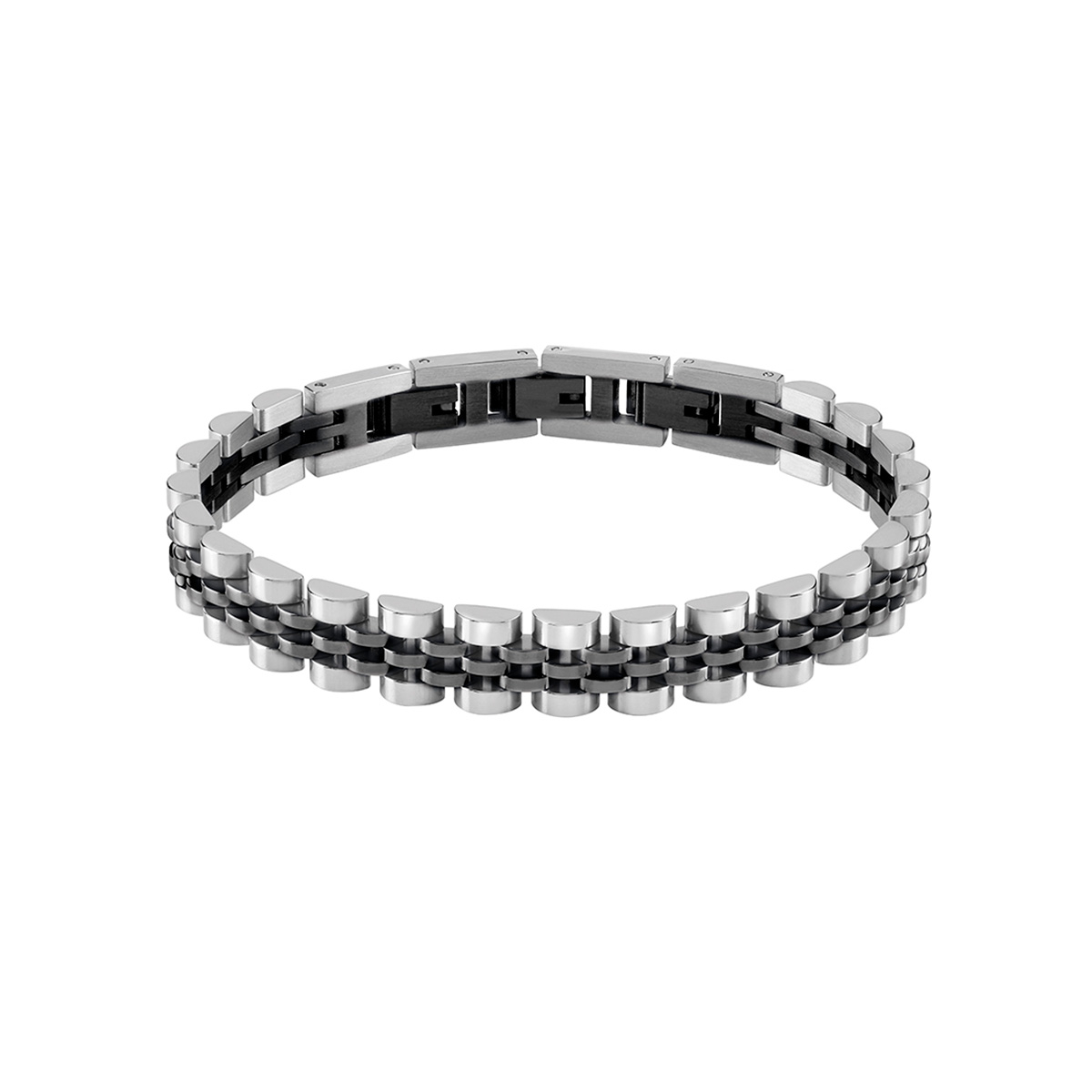 Bracciale in acciaio con dettagli in pvd nero.