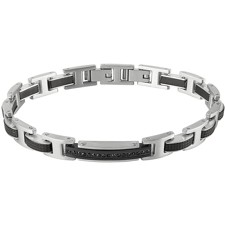 Bracciale in acciaio con elementi e zirconia di colore nero.