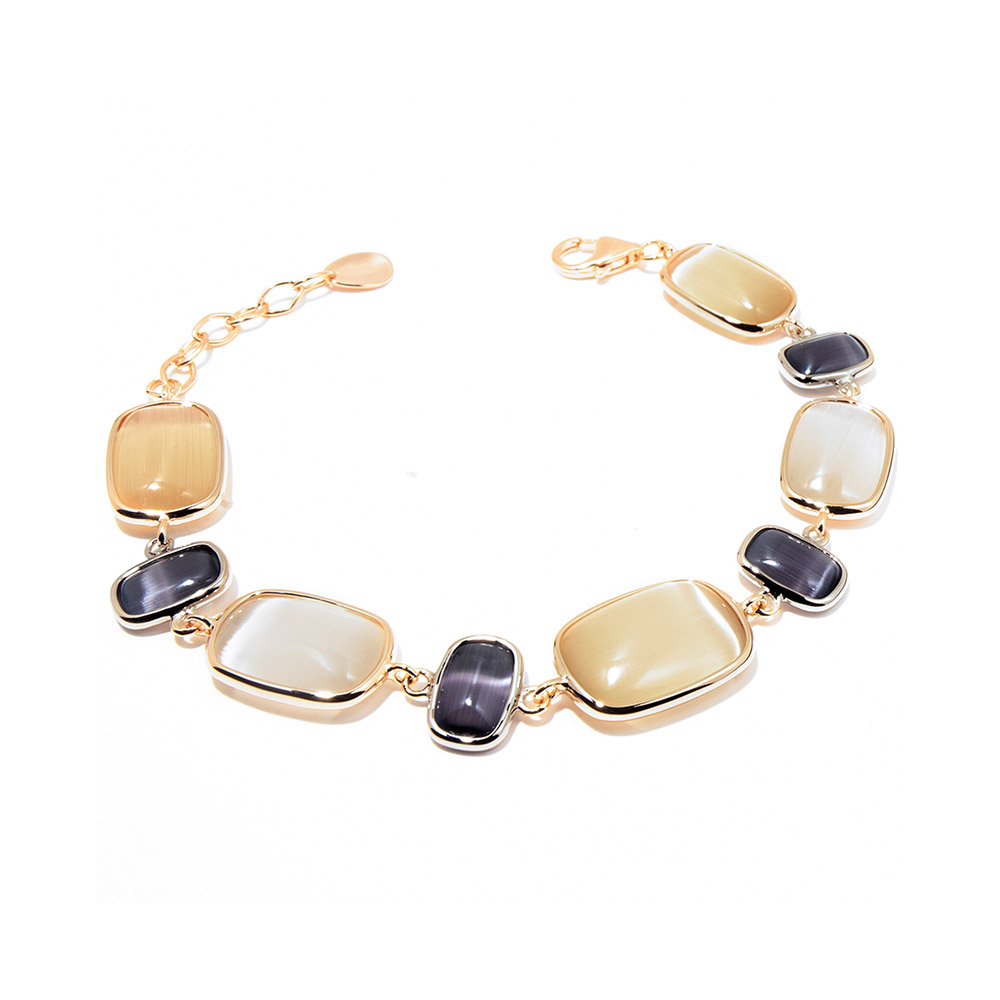 Bracciale firmato Madì in arg9ento 25 rodiati in oro rosa con quarzi tabacco e ghiaccio sfumati naturali.