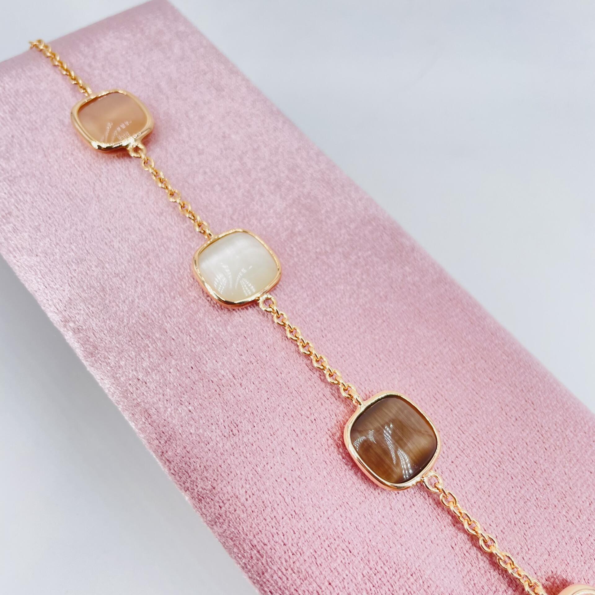 Bracciale in arg925 rodiato in oro rosa con quarzi tabacco e ghiaccio sfumati naturali