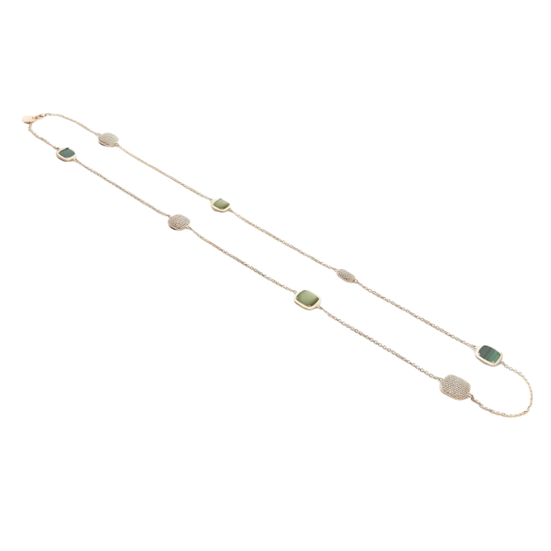 Chanel in arg925 rodiata in oro rosa con malachite naturale, quarzi verdi naturali e zirconia