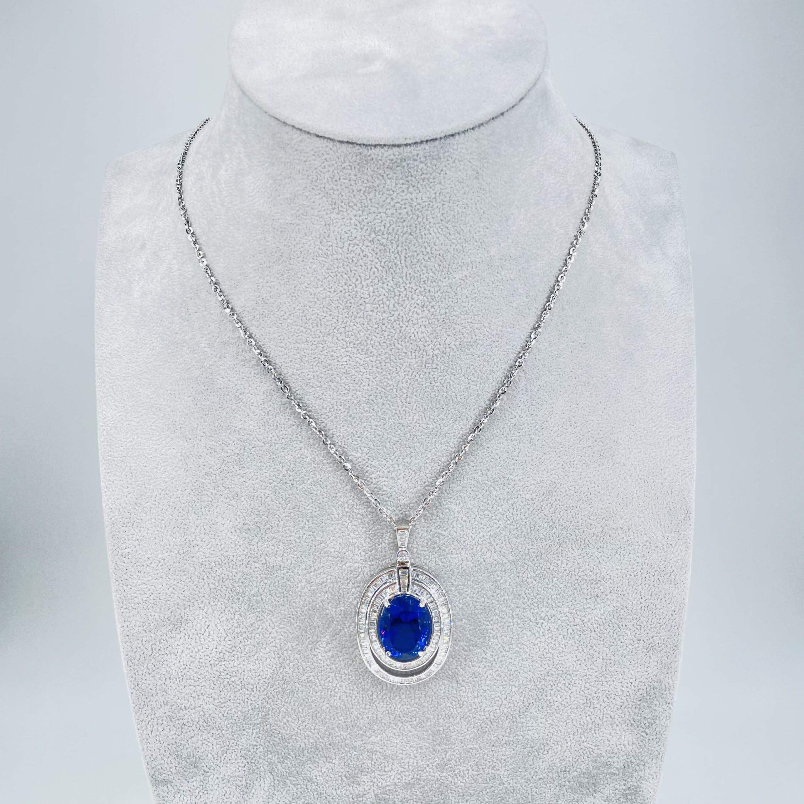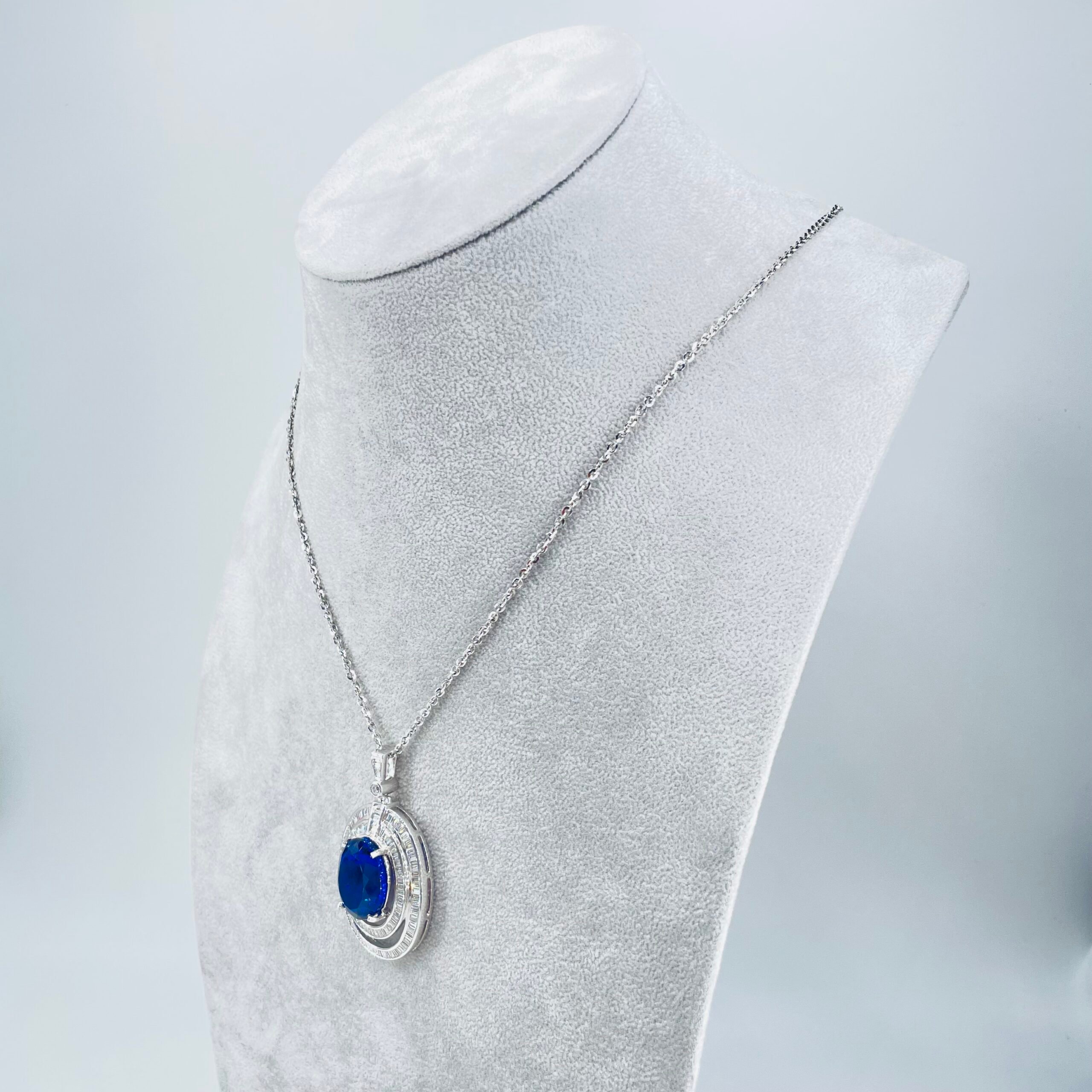 Collana in oro bianco 18KT (750) con zoisite naturale varietà tanzanite e diamanti naturali