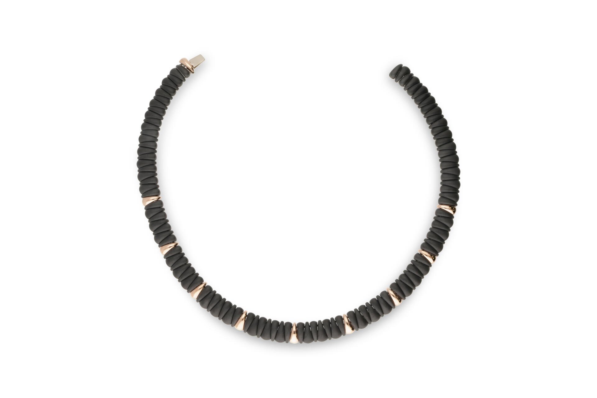 Girocollo firmato Roberto Demeglio collezione Artiglio in oro rosa 18kt e ceramica nera satinata.