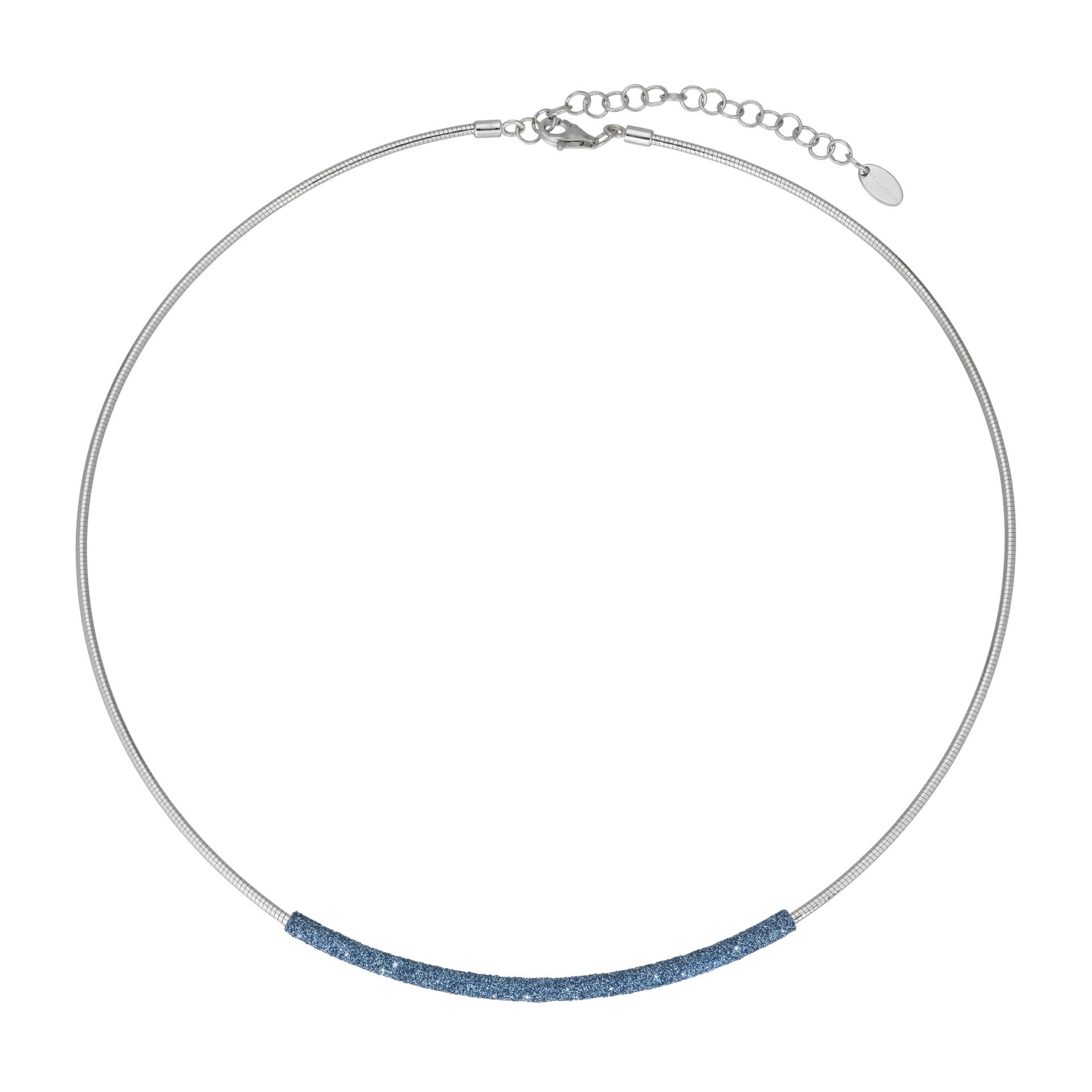 Girocollo firmato Pesavento semirigido in argento 925 rodiato in oro bianco con micro-particelle di minerali naturali di colore blu santorini.
