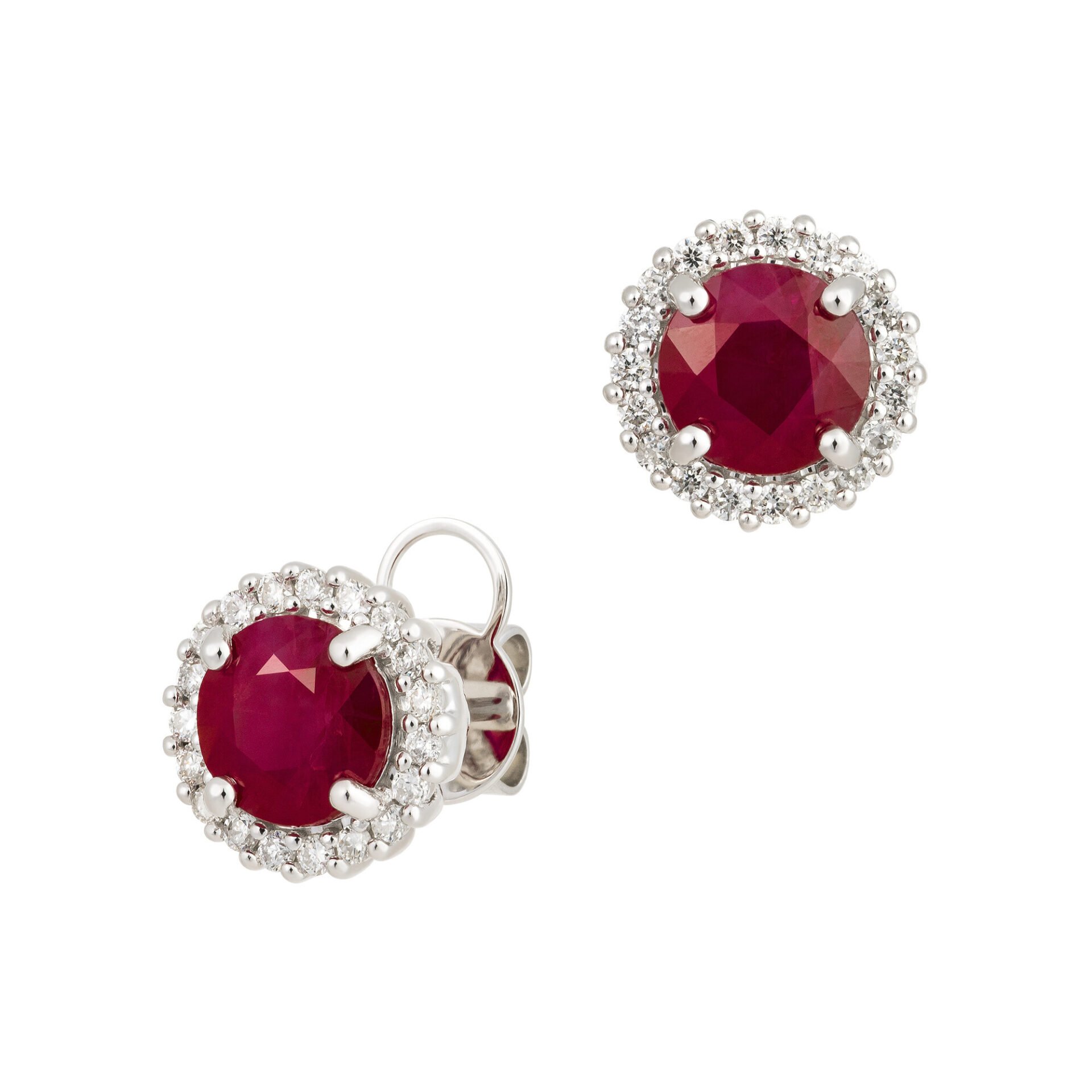 Orecchini a tappabuco in oro bianco 18KT (750) con rubini naturali e diamanti naturali