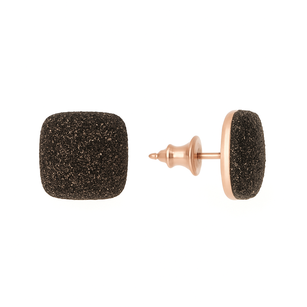 Orecchini a toppa firmati Pesavento in argento 925 rodiati in oro rosa con micro-particelle di minerali naturali di colore marrone.