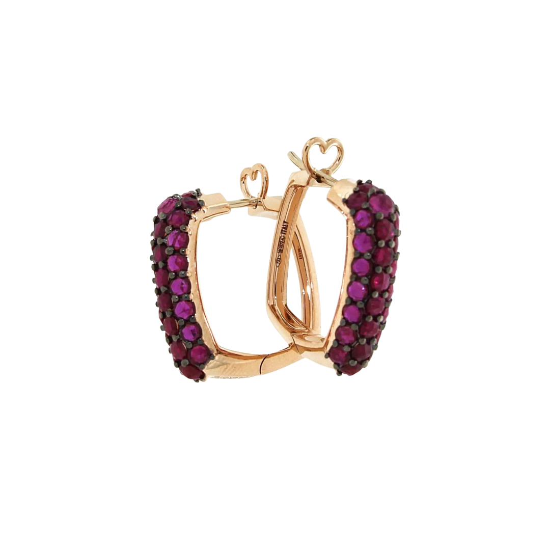 Orecchini squadrati firmati Giovanni Ferraris in oro rosa 18KT (750) con corindoni naturali varietà rubino.