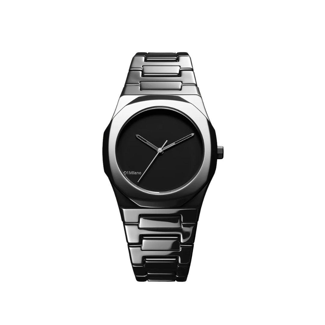 Orologio firmato D1 Milano in ceramica nera con quadrante di colore nero opaco.