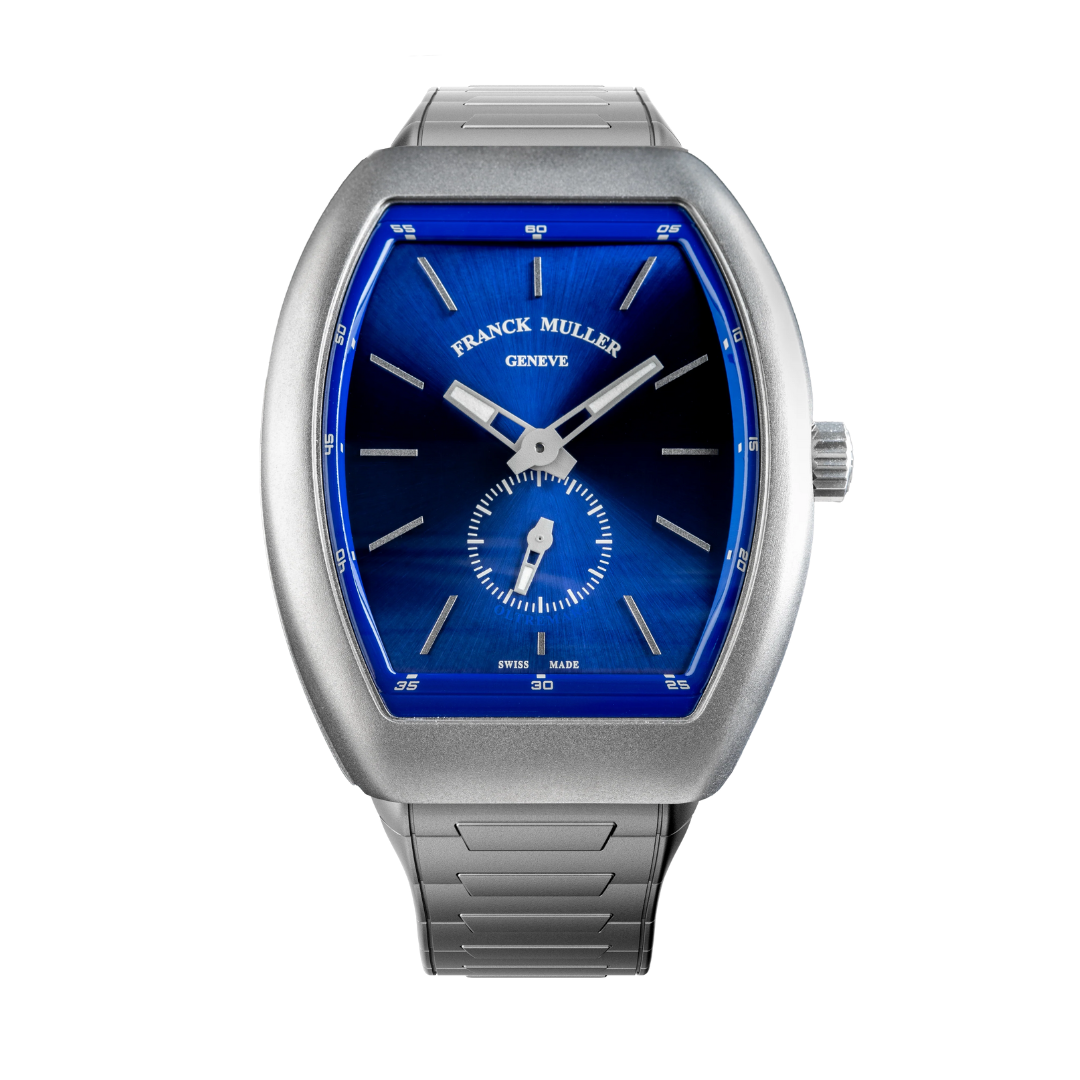 Orologio firmato Franck Muller Edizione Limitata in titanio con vetro zaffiro e quadrante di colore blu navy.