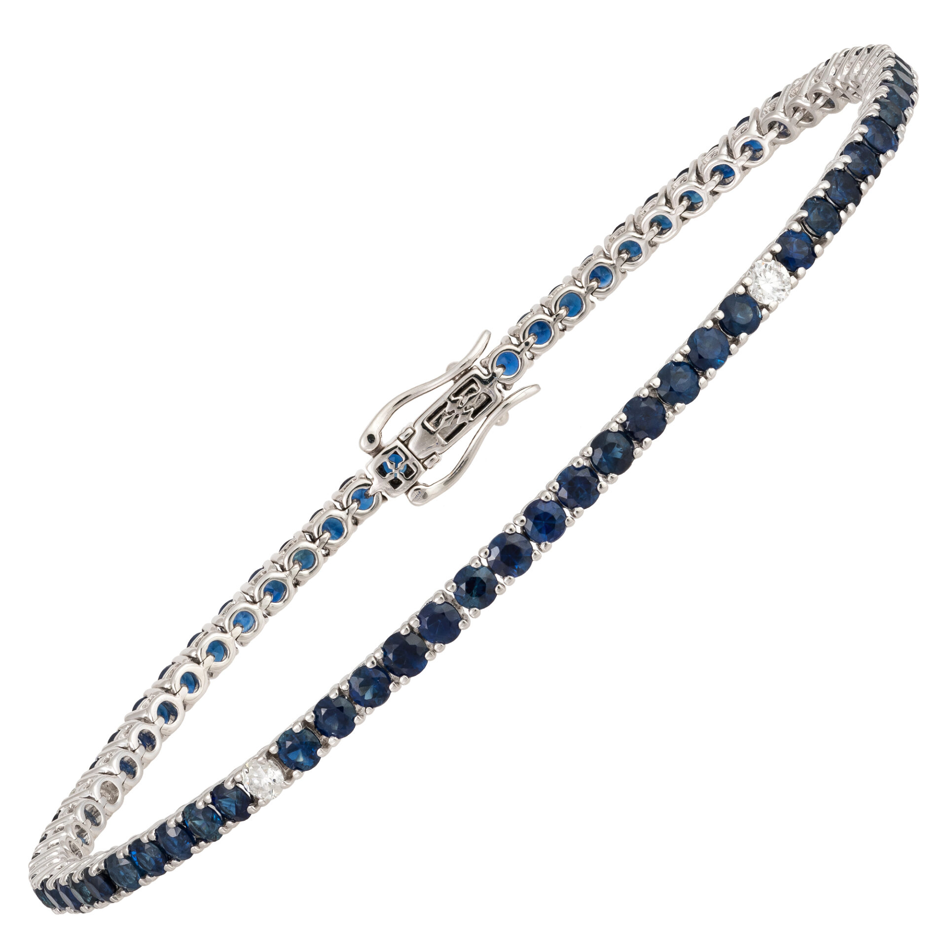 Bracciale a tennis in oro bianco 18KT (750) con zaffiri naturali e diamanti a spot naturali